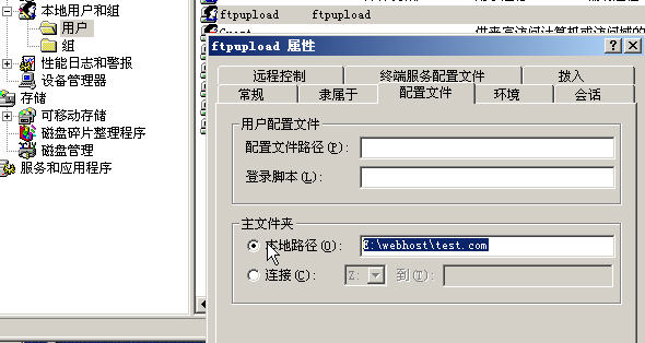 建立帳號(hào),并修改主文件夾路徑為你指定的目錄(指定的目錄必需要有此用戶的"完全控制"訪問(wèn)權(quán)限,權(quán)限可以在目錄上右擊--->屬性里修改). | |